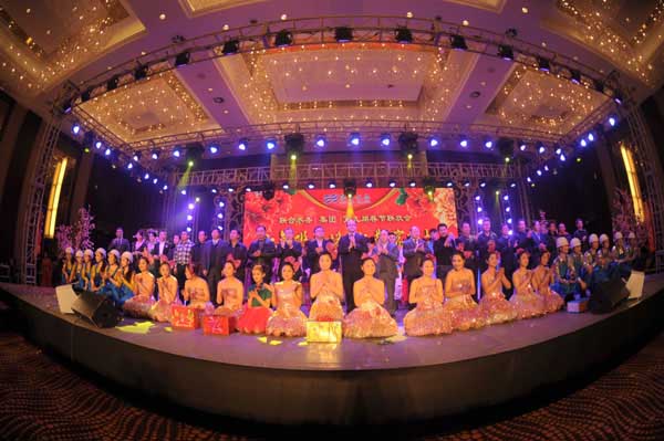 龍騰盛世歲更替,金蛇狂舞報春來。2013年2月6日,在龍去蛇來、辭舊迎新的時刻,由聯合水務集團主辦,宿遷銀控自來水有限公司承辦的主題為“十年聯合路,九載宿遷情”的聯合水務第九屆春節聯歡會在宿遷星辰國際酒店和韻廳隆重舉行。公司總部領導、各項目公司負責人及部分員工近300人歡聚一堂,載歌載舞,一起回顧了2012年的收獲與喜悅,共同表達了對2013年的期待與美好祝福。