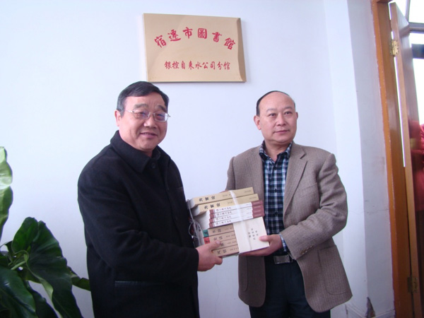 3月22日上午,“宿遷市圖書館銀控自來水公司分館”的揭牌儀式在公司熱烈舉行。宿遷市文廣新局、宿遷市圖書館領導、宿遷學院部分資深教授學者到賀,宿遷市文廣新局洪聲副局長與銀控自來水公司總經理夏承光共同為分館揭牌。