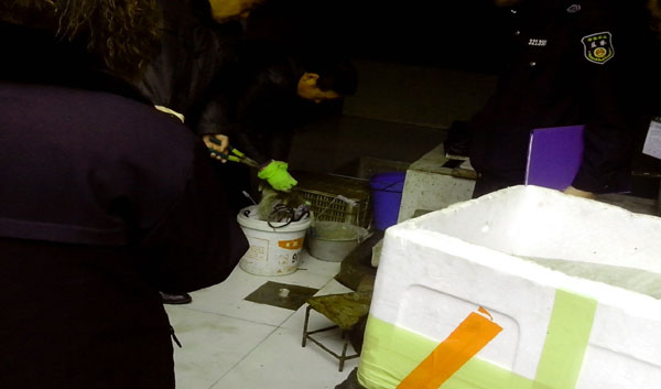 為規范水產市楊的用水行為,近日,稽查部配合市水政支隊對城區最大的菜市場內的水井進行封填。