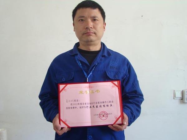 宿遷銀控自來水有限公司夏海斌又獲殊榮,他在“江蘇省自來水行業(yè)泵站操作工職業(yè)技能競賽”中取得優(yōu)異成績,繼被江蘇省總工會評為“江蘇省五一創(chuàng)新能手”、江蘇省人力資源和社會保障廳評為“江蘇省技術(shù)能手”后,再度被江蘇省住房和城鄉(xiāng)建設(shè)廳評為“行業(yè)杰出技能標(biāo)兵”。