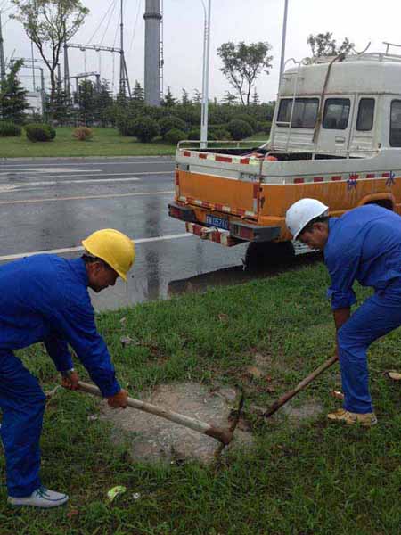 2個(gè)小時(shí)過去了,搶修工作已接近尾聲,此時(shí)突然狂風(fēng)大作,烏云密布,暴雨如注,仿佛一下子從白天穿越到黑夜。突發(fā)的天氣狀況讓維修人員措手不及。由于周邊樹木較多,風(fēng)力已達(dá)9級(jí),為了防止發(fā)生意外,丁經(jīng)理讓部分人員暫到工程車?yán)锎_^了一會(huì),風(fēng)力稍微減弱,全體人員冒著大雨,有條不紊地進(jìn)行維修收尾工作。后勤部迅速將器具整齊地排放在工程車上。