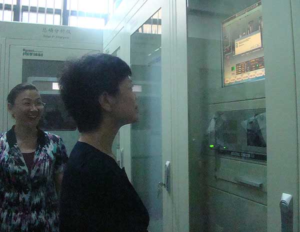 許副省長一行在夏總的陪同下參觀了駱馬湖泵站。許副省長詢問了取水、制水以及水質(zhì)化驗(yàn)流程,重點(diǎn)參觀了泵站內(nèi)部的環(huán)保在線監(jiān)控系統(tǒng)。在仔細(xì)觀看了各個(gè)監(jiān)控?cái)?shù)據(jù)點(diǎn)后,許省長表示:用水安全關(guān)系民生,水源的水質(zhì)尤其重要,一旦源頭出問題,將影響到千家萬戶,宿遷銀控自來水有限公司采用環(huán)保在線監(jiān)控系統(tǒng)監(jiān)測手段,監(jiān)測數(shù)據(jù)可以及時(shí)反映水源地水質(zhì)情況,是個(gè)不錯(cuò)的舉措。