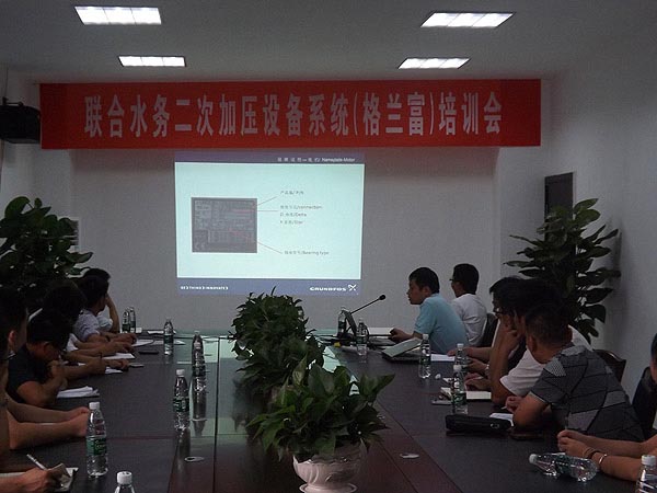 8月30日上午,由聯合水務總部組織的“二次供水加壓系統(格蘭富)培訓會”在宿遷銀控自來水有限公司二水廠會議室順利舉行。培訓由格蘭富公司資深工程師主講,聯合水務旗下的咸寧聯合水務有限公司和宿遷銀控自來水有限公司近30名二次供水相關員工參與此次培訓。