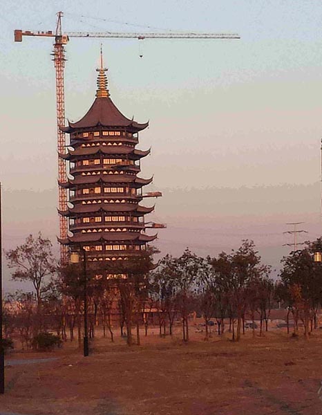 上下班必經的小路邊正在修建著兩座塔樓,記憶中的塔總與寺廟有所聯系,用于珍藏佛家的舍利子和供奉佛像、佛經之用,供世人供奉朝拜,然而當古色古香的塔樓出現在現代化建筑中卻總給人一種格格不入的感覺!