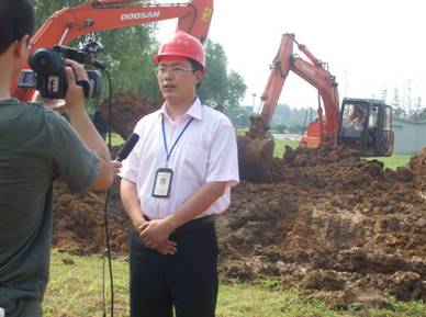 圖為聯(lián)合市政工程公司總經理葉峰接受電視臺記者的采訪