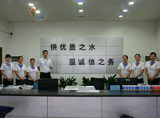 2005年,成立服務(wù)大廳,開展客戶投訴、業(yè)務(wù)受理、水費(fèi)繳納的一站式服務(wù);開通服務(wù)熱線電話88101000,有效增進(jìn)了公司與客戶之間的溝通。圖為服務(wù)大廳實(shí)景