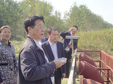 江蘇省創建國家環境保護模范城市省級評定小組領導在市水務局、市環保局等相關部門領導的陪同下實地調研了宿遷公司駱馬湖水源地