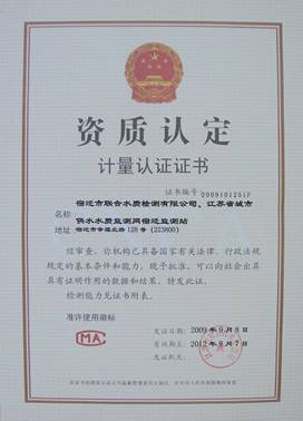 聯(lián)合水檢順利獲得計量認證證書
