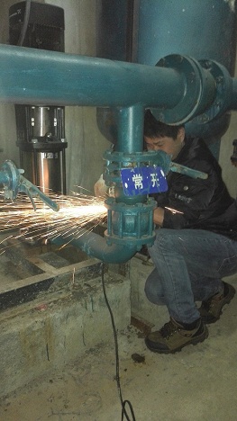 中豪星城一期分兩個(gè)增壓泵房,兩套系統(tǒng)每套三個(gè)泵組,每套均有兩個(gè)止回閥損壞,共計(jì)需要更換四個(gè)止回閥,但因?yàn)椴皇菄?guó)標(biāo)的產(chǎn)品,止回閥的采購(gòu)需要從廠家定制,另外安裝螺桿的長(zhǎng)度也不是常用尺寸,所以不僅止回閥需要從廠家定制,螺桿也需要特殊制作。考慮到現(xiàn)場(chǎng)前期安裝的隨意性,導(dǎo)致更換的螺桿不能拆卸掉,需要用角磨機(jī)把螺桿從中間切斷,其中靠近管道的兩顆螺桿還需要二次切割。