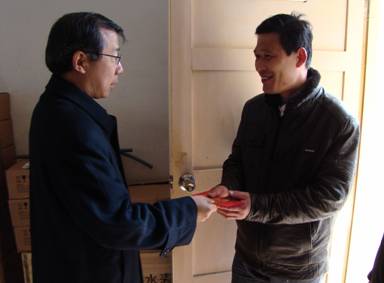 2月18日,集團公司俞偉景總裁在夏承光總經理、葉峰副總經理的陪同下,冒著凜冽的寒風,迎著陣陣喜慶的鞭炮聲,帶著親切的關懷與祝福來到宿遷銀控自來水有限公司親切慰問節日期間堅守生產崗位的干部職工,感謝大家在萬家團圓歡度春節之際堅守崗位,并向他們及家人致以節日的問候和新春的祝福。俞總代表集團公司向大家拜年,并一一派發紅包。