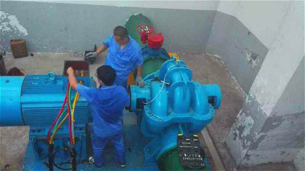 近日,泵房需要更換通往一水廠機組聯軸器,一天更換一臺,需要連續工作三天時間,設備部這些生龍活虎的小伙子堅持在這種艱苦的環境下工作三天,泵房的悶熱,打濕了厚厚的工作服,轟隆的機器聲更使他們心煩意亂,正是他們堅持不懈的精神使更換工作三天之內順利完勝。