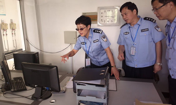 (圖2:市公安局副局長李笑梅(女)檢查公司監控系統)