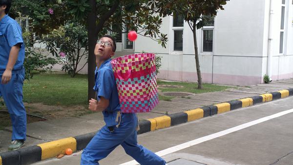 在9月29日上午舉辦的“背筐接球”活動中,共有32組報名參加,每組兩名員工配合,面對面距離5米站立,其中一人擲球,另一個人用后背背筐接球,在2分鐘內(nèi),以框內(nèi)球數(shù)為準(zhǔn)依次排名,活動要求投擲球時,投球人與背筐人必須面對面站立,否則接球無效。最終,機電設(shè)備部張曉超&程堯組合接到41個球獲得一等獎,朱曉成&周允勝組(36個)及李欣源&鄭建組(35個)獲得二等獎,陳陽&王藝錦組(31個)、馬鑫鑫&馬志強組(30個)、楊姍姍&田珂組(30個)及朱麗艷&姜輝組(29個)分別獲得三等獎。