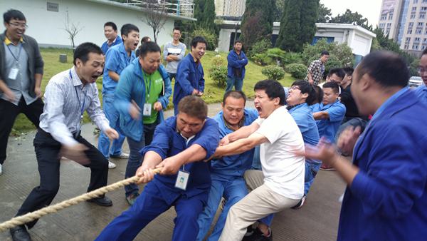 緊接著則是壓軸的拔河比賽。本次拔河比賽采取三局兩勝制,經(jīng)過抽簽,第一輪由行政污水聯(lián)隊對陣客服聯(lián)隊,工程聯(lián)隊對陣生產(chǎn)聯(lián)隊。最終客服聯(lián)隊、生產(chǎn)聯(lián)隊勝出。在第二輪的比拼中,客服聯(lián)隊連勝兩局蟬聯(lián)冠軍。拔河比賽是公司歷年舉辦文體活動的重頭戲,能高度展現(xiàn)團隊成員協(xié)作統(tǒng)一的能力,更能體現(xiàn)全體成員團結(jié)一致,奮勇拼搏的精神風(fēng)貌。