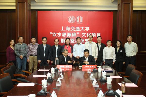 10月13日上午,聯合水務集團董事長俞偉景先生(交大1980級校友),與夫人晉琰女士(交大1985級校友)慷慨捐資,支持母校上海交通大學徐匯校區“飲水思源碑”修繕項目捐贈簽約儀式在徐匯校區總辦公廳隆重舉行。 俞偉景董事長與上海交通大學宣傳部部長胡昊簽署捐贈協議,俞偉景、晉琰夫婦捐贈貳佰萬元支持母校上海交通大學徐匯校區“飲水思源碑”修繕項目。交大黨委辦公室、校長辦公室、教育發展基金會、學指委、基建處、后勤保障處、安泰經濟與管理學院、媒體與設計學院等部處院系負責人參加了簽約儀式。