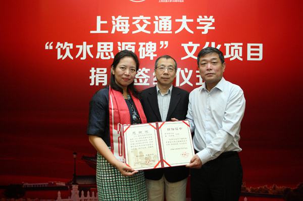 俞偉景董事長在講話中感恩母校對他們夫婦的學業培養和人格養成,這些都為他們在成長道路上打下了堅實基礎。他提到每個交大人心中都有一座獨特意義的“飲水思源碑”,它不僅是歷史延續也是文化的象征,蘊涵著交大百年底蘊,更維系著歷代交大人的情感之源。此次捐資維修這座“交大象征”,正是寄托著他們夫婦始終不渝的“思源”情結和愛校之心。為能給母校添磚加瓦,他們感到無比的榮幸。相信“飲水思源碑”、執信西齋及周圍景觀在進一步修繕后,將在每個交大人心中烙下更深的“思源印記”。