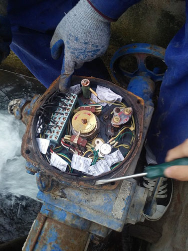 打開閥門外罩,觀察到內(nèi)部電動(dòng)裝置線路存在銹蝕損壞現(xiàn)象,隨后,更換損壞原件,加入適量干燥劑,去除原有殘余密封膠,然后重新涂抹密封膠,蓋上罩殼,完成對閥門的維護(hù)。