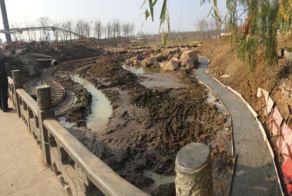 目前,馬陵河西側景區內DN150管道已安裝約500米,并已完成管道壓力試驗工作。