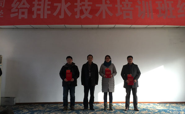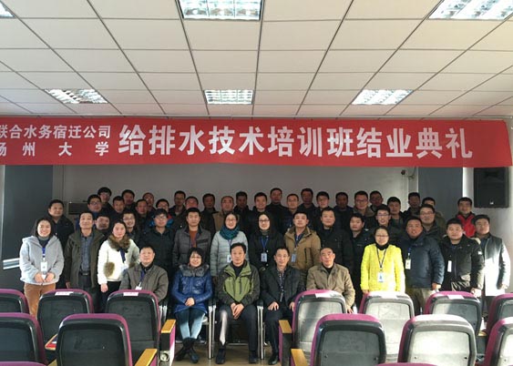 宿遷公司與揚州大學環境科學與工程學院達成的《給排水專業知識》培訓協議,從2015年6月26日開班至12月18日,共144課時的培訓,于12月25日順利結業。揚州大學環境科學與工程學院鄢碧鵬副院長、喬慶云副教授、陳建華主任、宿遷銀控自來水公司管委會領導、以及47名學員參加了結業典禮。