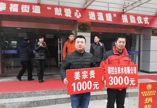 2016年1月22日上午,幸福街道黨工委舉辦第三屆“獻(xiàn)愛心、送溫暖”主題募捐活動(dòng),宿遷銀控自來水有限公司積極參加活動(dòng),捐款3000元整,在寒冷的冬天為貧困群眾送上新年的祝福。