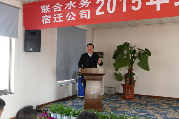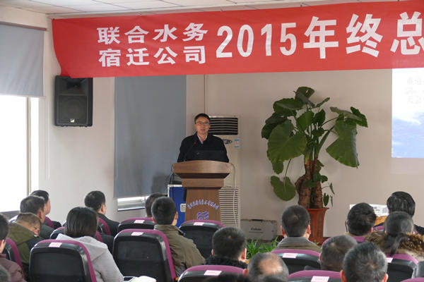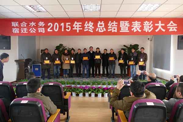 2016年2月3日,聯(lián)合水務(wù)集團(tuán)宿遷銀控自來水有限公司召開2015年度年終總結(jié)暨表彰大會。大會在宿遷公司三樓會議室舉行。會議由宿遷銀控自來水有限公司副總經(jīng)理陳少軍主持,聯(lián)合水務(wù)集團(tuán)供水業(yè)務(wù)副總裁劉猛先生,污水業(yè)務(wù)副總裁陳樵先生,人事行政總監(jiān)楊麗霞女士,生產(chǎn)運(yùn)營總監(jiān)王歡總監(jiān),宿遷公司主管以上人員及員工代表共計(jì)72人參加此次會議。