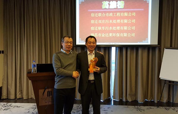 其后,由集團董事長兼總裁俞偉景先生頒發(fā)“聯(lián)合水務(wù)集團2015年總裁特別獎”,宿遷聯(lián)合市政工程有限公司曾真總經(jīng)理憑借2015年驕人成績獲得此項大獎!俞總肯定曾總帶領(lǐng)團隊的辛勤付出,同時希望各運營公司比學(xué)趕幫,在新的一年創(chuàng)造佳績,爭獲獎勵!