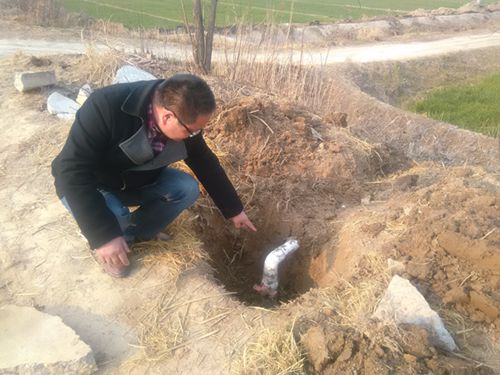 莫非稻草下面藏有什么?試探性撥開,果不其然,稽查人員發現稻草下面有些許新土,找來鐵楸挖了不到50厘米,一根外接的白色pvc管道映入眼簾。“我們自來水公司管網施工過程中,采用的是專業抗擊耐壓的黑色PE管道,絕非這種材質,僅憑這一點就可以初步判斷是偷水行為。”宋衛偉順藤摸瓜,很快一根隱藏在地下,足有一千米的水管被稽查人員發現。