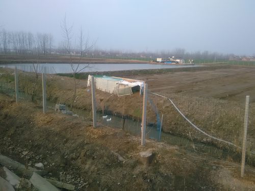 沿途追尋,白色水管一直延伸至該蝦塘中。初春時節,記者見附近溝渠幾乎干涸見底,只有該蝦塘碧波蕩漾。