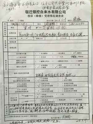 3月22日,宿遷公司就如何提高服務(wù)水平、改善投訴受理現(xiàn)狀召開服務(wù)受理工作專題會(huì)議,會(huì)上,曾總明確要求,公司檢查小組要針對(duì)維修受理及投訴受理情況開展不定期專項(xiàng)檢查,檢查工作要深入基層,與投訴客戶面對(duì)面回訪,從客戶的角度客觀公正評(píng)價(jià)公司服務(wù)水平和服務(wù)質(zhì)量。會(huì)后,公司檢查小組嚴(yán)格按照會(huì)議要求,立即投入到服務(wù)受理情況專項(xiàng)檢查各項(xiàng)工作中。