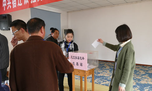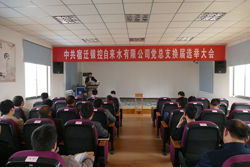 會議第三項議程是選舉宿遷銀控自來水有限公司第二屆黨總支委員。由杜愛軍同志宣讀《中共宿遷市委組織部關于宿遷銀控自來水有限公司黨總支換屆選舉的批復》,隨后,尹邦交同志宣讀本次大會《選舉辦法》。大會通過無記名投票方式差額選舉產生了由曾真、陳少軍、尹邦交、杜愛軍、蔡猛5人組成的新一屆黨總支委員會委員并通過表決,推舉曾真同志為新一屆黨總支書記,陳少軍同志為副書記,尹邦交同志紀檢委員,杜愛軍同志為組織委員,蔡猛同志為宣傳委員。