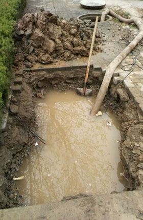 (圖:探漏員查到的漏點正在維修中)