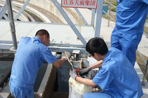 (圖:更換初沉池刮泥機減速機潤滑油)