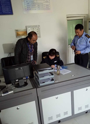 在制水部經理陪朱曉成陪同下,監督所工作人員先后現場查看了加氯間、加礬間。隨后對涉水的原材料生產廠家的衛生批件和生產許可證等材料進行了檢查,并認真核對了生產人員的健康證。