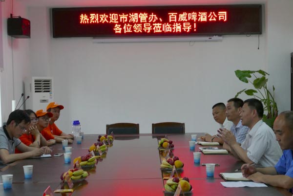 6月28日下午,在市湖管辦副主任鄭思廣的牽頭下,百威英博(宿遷)啤酒有限公司廠長陳治珍、EHS經理馬旭東等人和北京大學社會實踐小組一行二十余人來我公司參觀調研,宿遷公司副總經理陳少軍、總經理助理趙軍熱情地接待調研組一行。調研組先后參觀了駱馬湖水源地、第二水廠和水質檢測中心。