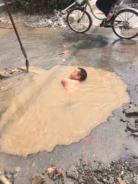 7月27日,37度的高溫天氣,維修人員在接到馬陵路DN300管道爆裂的報修后,立即趕赴維修現場進行維修。維修員根據經驗挖出管道后發現泥水已灌滿操作坑,導致漏點、漏水量不明確。施工人不顧水渾,脫掉外衣跳進操作坑,在污水中判斷漏點、漏水量等情況,以便進行下一步維修。