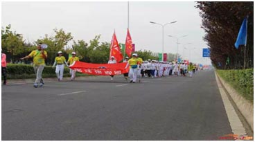 9月3日上午7點10分,我們統一著裝,到指定地點集合(大風車),列好隊后向開幕式所在地湖濱浴場出發,到了開幕式點,我們立即按照各個方隊排好。