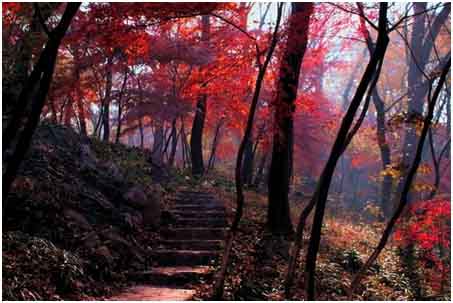 天陰陰的,江面上彌漫著霧,站在始皇臨江處,只能看見山腳下滾滾東逝的江水,看不見漫山的紅,順著山道往下走,漫步在樹林中,清新的空氣、幽靜的山林,足以讓疲憊的身心得到短暫的放松。游覽整個景區,可以想象,棲霞山的美絕不僅是“秋”,大自然賜予棲霞山的美不是一個秋天就能夠訴說完的,一年四季都有屬于它不同季節的獨特之美。