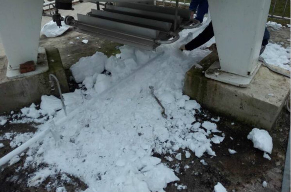 (圖1:工作人員正在清理輸送管路上的冰霜)