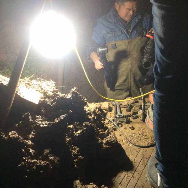 12月1日午夜時分,羅圩鄉吉安花園耀眼的燈光處,正是我們的搶修現場。我們三個人在漆黑的夜空下,冒著嚴寒刨開損壞的供水配件。盡管寒風刺骨,但看著白白流失的水量,我們比誰都要心疼,不管黑夜有多冷,都要盡快修好,避免浪費資源,確保第二天早上老百姓用上安全放心的自來水。