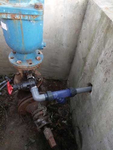 機電部維修人員確定方案,自己準備材料,開挖、接管、回填、僅用3天就完成了改造工作。將原有的∮20的PVC管道改為∮32的PE管道,增加了口徑,在原有的基礎上加裝了過濾器,防止管道長期使用過程中再次堵塞,保證了一水廠原水水質的數據準確性。