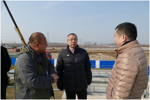 隨后,俞總一行現場查看了第二水廠三期項目施工場地情況。隨著供水區域的不斷擴大,現有的供水能力將無法滿足逐日增長的用水需要,為此,宿遷公司投資約1.5億元建設8萬m³/d的原水輸水工程及凈水廠工程。三期項目工程負責人王冬青向俞總匯報了工程進度,目前,各項前期準備工作進入尾聲,征地工作已于元旦期間順利完成,樁基工程也已全面結束,土建施工隊已經進場,為年會全面開工做好準備。俞總等領導詳細聽取了匯報并提出進一步要求,三期工程時間緊迫,一定要在保證工程質量的基礎上攻堅克難如期完勝工程建設,同時,假日期間務必做好各項撤場工作,保證安全。