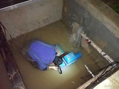 凌晨1點30分,各部門人員在進行了短暫的休息后分別到達現場。凌晨2點整在進行了相關準備工作后便開始了搶修工作。在關閉了泵站出入水總閥后,漏水口水流逐漸變小,但由于井內積水已滿需要等待排水到位后方可進行維修操作。2點20分左右,就在等待排水的過程中,井內的潛水泵突發故障,此時管內余水仍通過漏水口不斷排出,井內水位開始上漲,為了爭取時間。機電部程堯同志不顧寒冷,在穿上皮叉后第一時間跳入井內將潛水泵取出方便檢查維修,同時為了防止井內水位上漲過快,及時將泵站內備用的小型潛水泵放入井內抽水,并同時采取了用水桶人工往外潑水的方式。