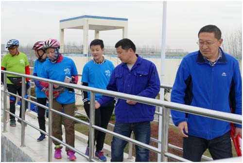(圖2:騎行志愿者們現(xiàn)場(chǎng)參觀制水工藝)