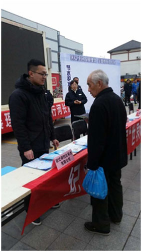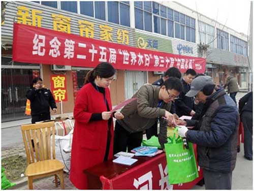 3月22日上午,宿遷銀控自來水有限公司與市水務(wù)局、沂沭泗駱馬湖管理局等單位在市區(qū)大潤(rùn)發(fā)超市廣場(chǎng)聯(lián)合舉行了主題為“落實(shí)綠色發(fā)展理念 全面推行河長(zhǎng)制”的宣傳活動(dòng),號(hào)召全民節(jié)約用水,愛護(hù)水資源,同時(shí)向廣大市民朋友宣傳我們的服務(wù)理念、服務(wù)機(jī)制及日益創(chuàng)新、豐富多彩的服務(wù)方式,受到了熱烈歡迎,很多市民前來咨詢及領(lǐng)取宣傳材料。同日上午,洋河區(qū)域供水服務(wù)中心與宿城區(qū)水務(wù)局聯(lián)合舉辦了“紀(jì)念第二十五屆世界水日第三十屆世界水周”宣傳活動(dòng),上午九點(diǎn)左右,該中心負(fù)責(zé)人與參加活動(dòng)人員一行去往中揚(yáng)鎮(zhèn)街主干路段參加宣傳活動(dòng),向廣大居民用戶宣傳水法以及當(dāng)?shù)刈詠硭畠r(jià)、繳費(fèi)點(diǎn)等,引起良好反響。