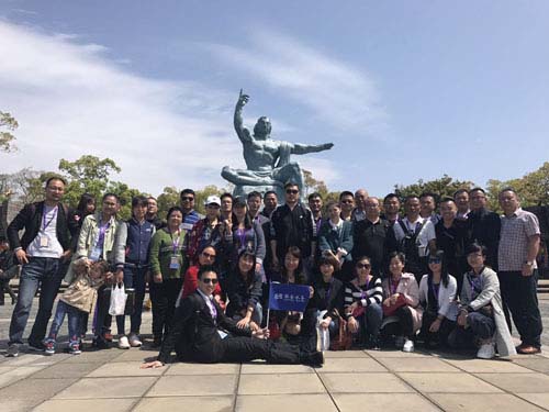 4月21日早晨船終于到達了日本長崎港口,點通過安檢進入了日本國土,不可否認日本的環境衛生確實很不錯,路上看不到一個垃圾桶,也沒有一個垃圾,環境也很優美,但人口的密度又顯得擁擠。低排量的小車也是日本的一道風景線,茂密的樹木顯現出優美的長崎,日本是島國,山丘也是一大特色。集合完畢,在導游的帶領下我們前往了長崎的各個景點進行觀光,最著名的當然數平和公園了,平和公園里的和平祈愿像高高的聳立在公園中間,右手指天左手撫平,祈求蒼天給世界帶來和平,在這里我們聯合水務的員工們進行了大合影。