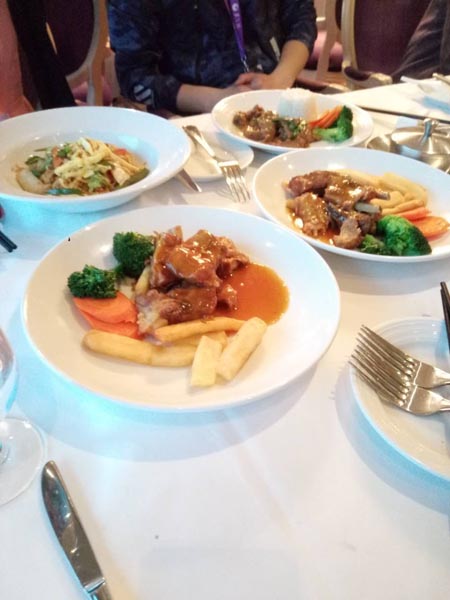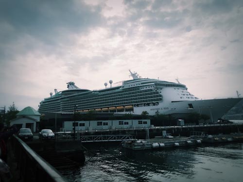 雖然去過海邊游玩也乘坐過海上游船,但是對于大海和大型郵輪的概念并不清楚,腦海中大概只有《泰坦尼克號》那部電影中的壯闊景象。19日準時到了吳淞口碼頭,遠遠地看過去就知道了海洋水手號的龐大,登船之后可以說是震撼,真是一座漂浮在海洋上的城市。雖然船上隨處都有清晰的指示牌,在電梯口附近還有電子查詢屏幕,但是由于船體真的太大所以在船上的幾天還是經常走錯方向。整個船上游客加上船員有三千多人,船上有充足的設施,休閑娛樂,品嘗美食,悠閑的時光盡可以放松,去體會自己想要的方式。不管是白天還是晚上都可以來到位于五層的皇家大道,白天是購物的天堂,而到了夜晚則燈火輝煌,富麗堂皇,人頭攢動,各種派對輪番上演,盡情體驗來自皇家加勒比的熱情。船上最大的劇場—薩沃伊大劇院則是每晚必去的地方,精彩的演出博得陣陣掌聲和尖叫聲。而對于我去的最多的地方則是十一層甲板,這里有跑道,泳池,健身中心、自助餐廳。好久沒有專門健身,所以每天的日程里有健身,泡澡,徹底的放松,吹著海風,看一望無際的大海。