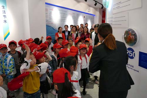 早上8點30分,終于迎來了這群最萌的小家伙們。小朋友們走進水的世界立即被神奇的“無源之水”所吸引,精致的模擬沙盤、科技感濃重的電子屏幕等展項也都牢牢讓小朋友們注目觀看。解說員積極和小朋友互動,通過現場問答、觀看影片等多種方式,在愉快參觀的同時給小朋友們灌輸從小“愛水、惜水、節水”意識。在展館的最后,小朋友和家長們紛紛在電子版上留言簽名,場面熱鬧非凡。