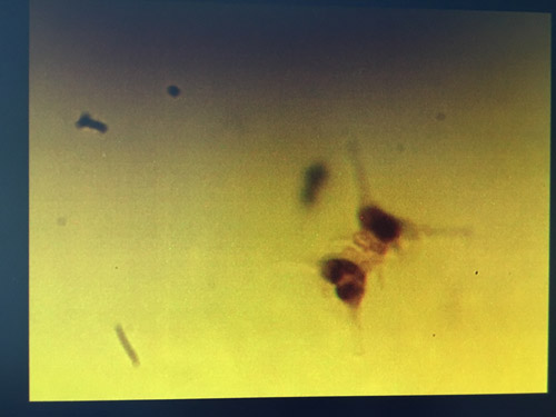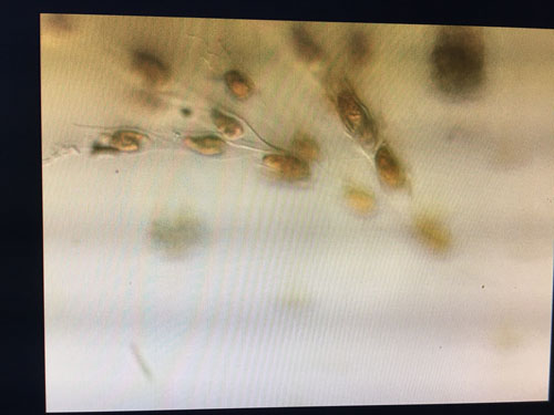 在不同的氣候條件下,駱馬湖中的藻也各不相同,而我們實(shí)驗(yàn)室運(yùn)用顯微鏡每日都要檢測(cè)駱馬湖中藻類的數(shù)量以及種類,而我的同事們運(yùn)用了無窮的智慧對(duì)各種藻類的形狀進(jìn)行了形象生動(dòng)的總結(jié):硅藻,有的像針桿一樣,有的像手表鏈一樣一節(jié)一節(jié)的;隠藻,像米粒一樣;藍(lán)藻,有密密麻麻像小學(xué)生做操站隊(duì)一樣排列的,有像蠶豆瓣一樣,還有像一條美麗的細(xì)絲帶;綠藻,有像彎彎的月牙一樣,有像四葉草一樣,還有的像兩端長(zhǎng)了胡須的毛毛蟲一樣;裸藻,有的像烤腸一樣,有的像一片細(xì)長(zhǎng)的樹葉,有的像手雷,還有的像是金黃的玉米棒;我覺得最漂亮的藻就要數(shù)金藻了,像是一節(jié)金黃的麥穗,又像孔雀開屏的尾巴。