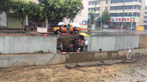 中午時分,下起了瓢潑大雨,搶修人員絲毫不顧,對管道附近重新開挖,擴大作業面積調整管道。仿佛他們不知疲倦,衣服早已濕透卻渾然不覺,只為早點修復管道,為居民用戶恢復供水,現場好多居民也對大雨中的搶修人員豎起了大拇指。