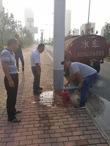 我們稽查員一直在灑水車邊蹲守,當時室外溫度已超過40°,每個人都滿頭大汗,衣服濕了又濕。當再次聯系標段負責人時被告知還在鹽城,并一直拖延。萬般無奈之下,我們唯有報警,經耿車派出所及時協調,對方終于同意補交水費,處理結束已是晚上8點多。
